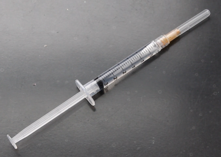 - Nu har vi en spruta med ca 150 enheter utan någon luft.