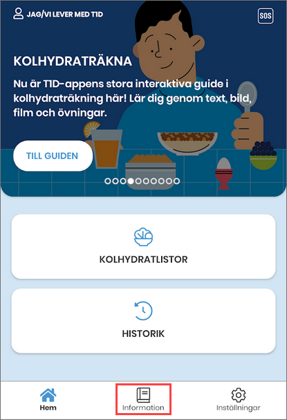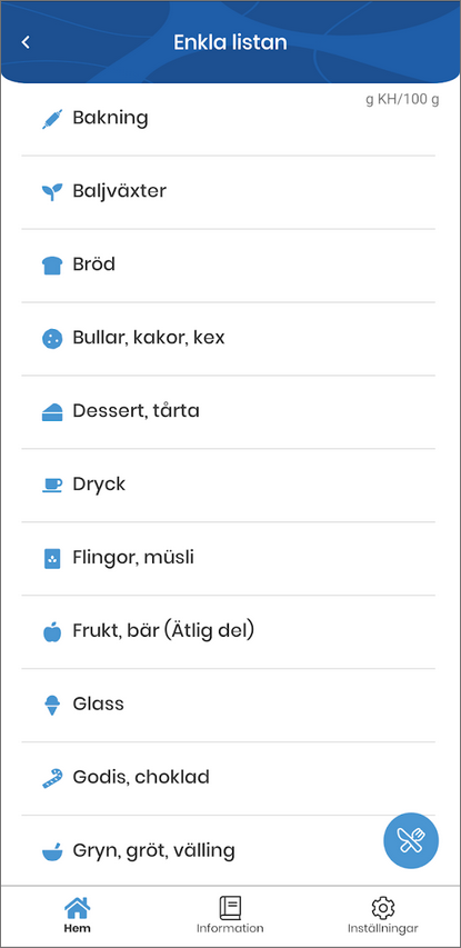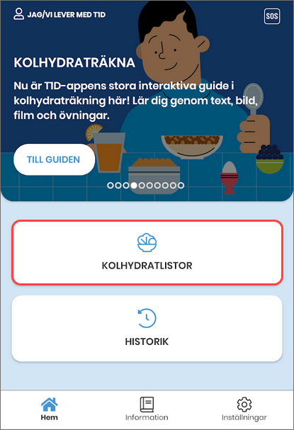 - Öppna appen och tryck på "KOLHYDRATLISTOR":