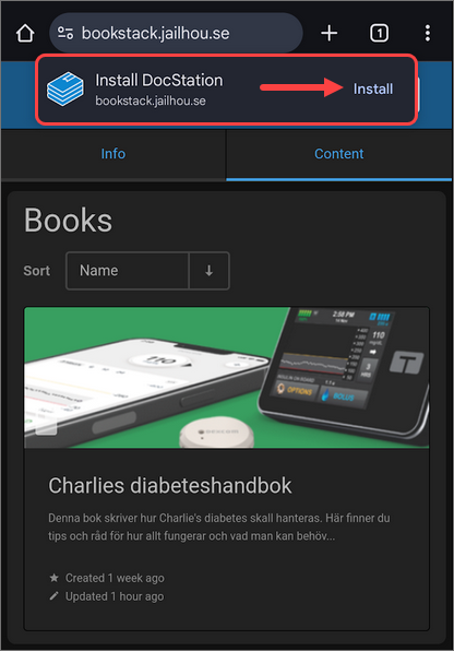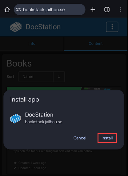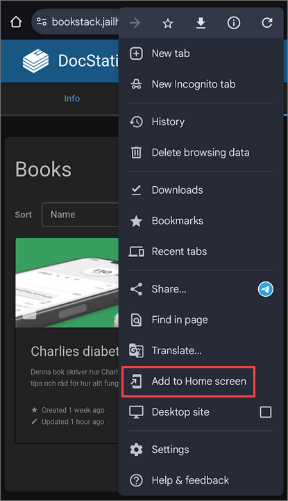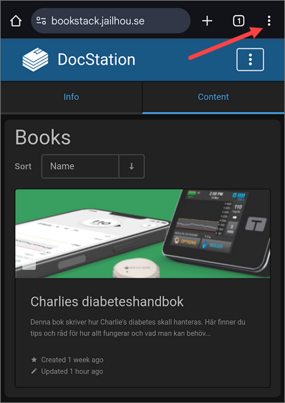 - Öppna Chrome på mobilen och gå till bookstack.jailhou.se: